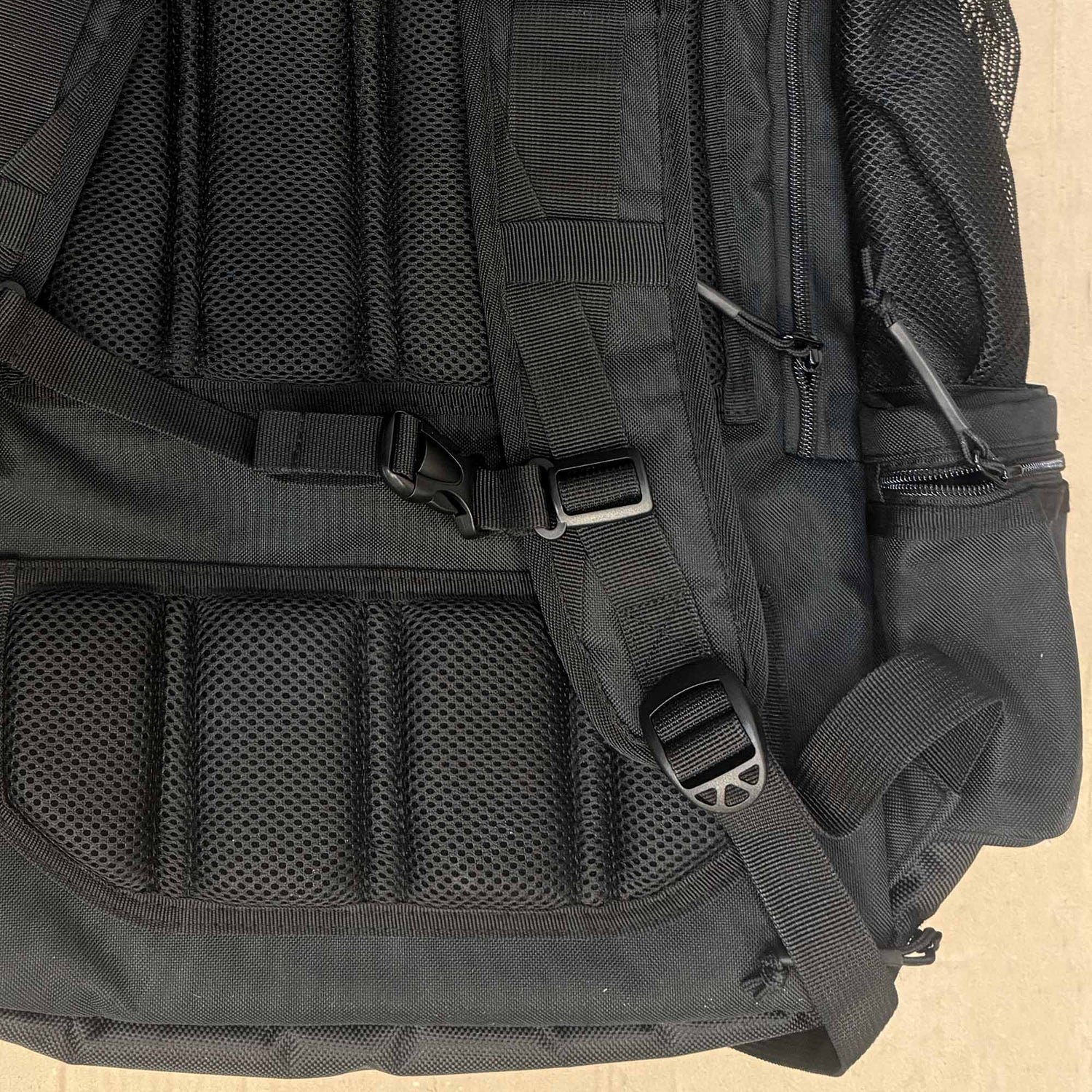 – Mesh pockets and zipped side pockets.