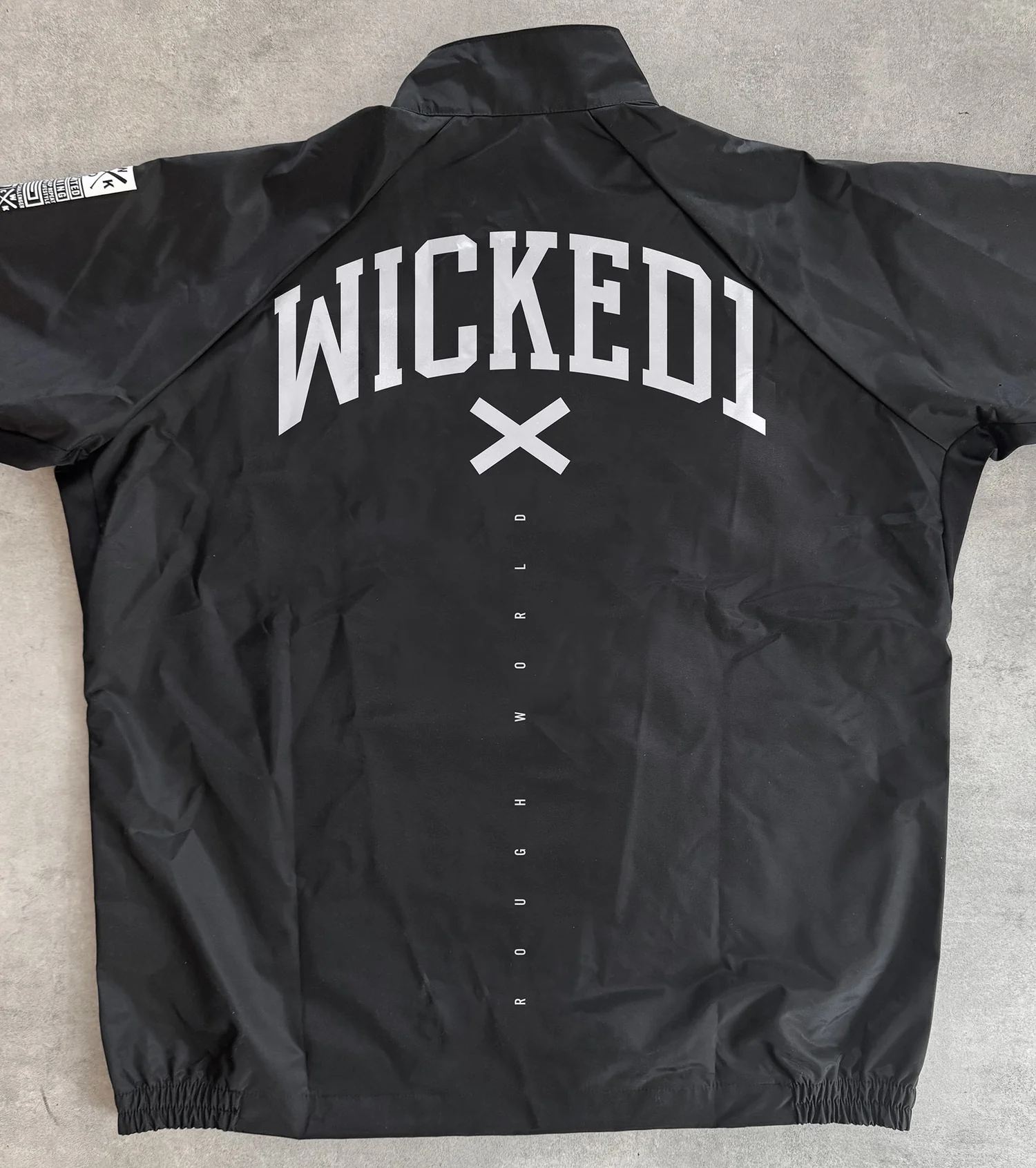 – Long sleeved, fully zipped jacket with a stand-up collar.